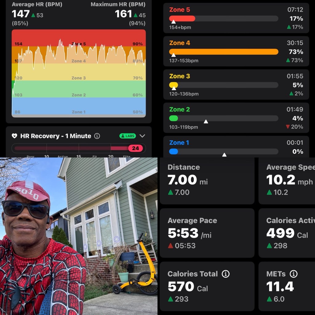 Still nursing some bruises so I avoided slippery streets. I’m still trying to get 7 miles in 20 minutes.