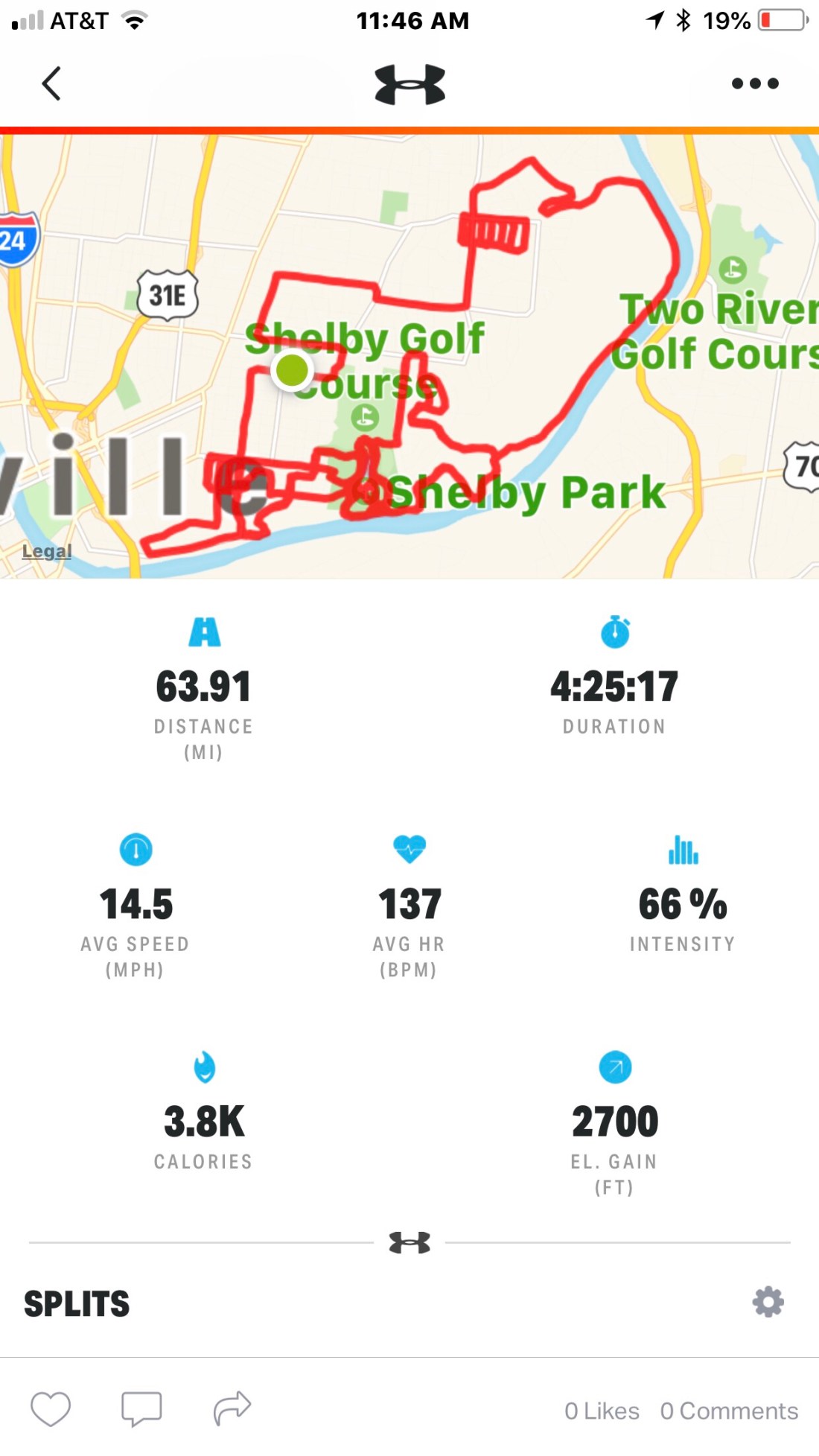 Best day I’ve had in a long time. I usually go to the hills on 17 teeth but today I left the 16 on & figured if I got blown I’d just do a quick Shelby Bottoms 30 & call it a day. Up the 3rd toughest hill I regularly climb I knew I was enough in shape to bite of a bigger chunk. That feeling beneath all the ache & fatigue we call Cycling which says Yes is the Muse.