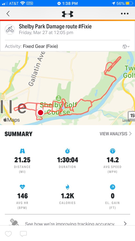 I noticed the direction a few cyclists were taking & bet Shelby was open again & I was right. The “new bridge” is complete but there’s no paved trail & the rain means mud & I won’t try that again. Total yuck. But the path to the Airport was open – littered along the sides with Roofs Doors Air Conditioner Components & Aluminum Siding. I’m guessing the nails (which one still finds on Holly Fatherland & Lillian) are lost in the woods. There are stretches where one can see the river so many trees are down.