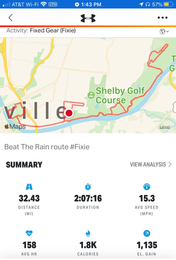 Flat today to avoid any rainy hills & a new police murder scene on Shelby [sigh]. Flat it was but energetic: