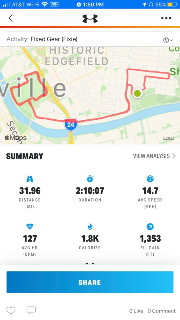 Biting-Fly Avoidance Route again. I remember going 50 miles on this loop several years ago. An early start provides safe laps for hours but even then eventually motorists thinking only of gas will make your day quite perilous. The intellectual concept of Bike Lane vanishes from their field of view & unless you happen to be attentive your day is done.