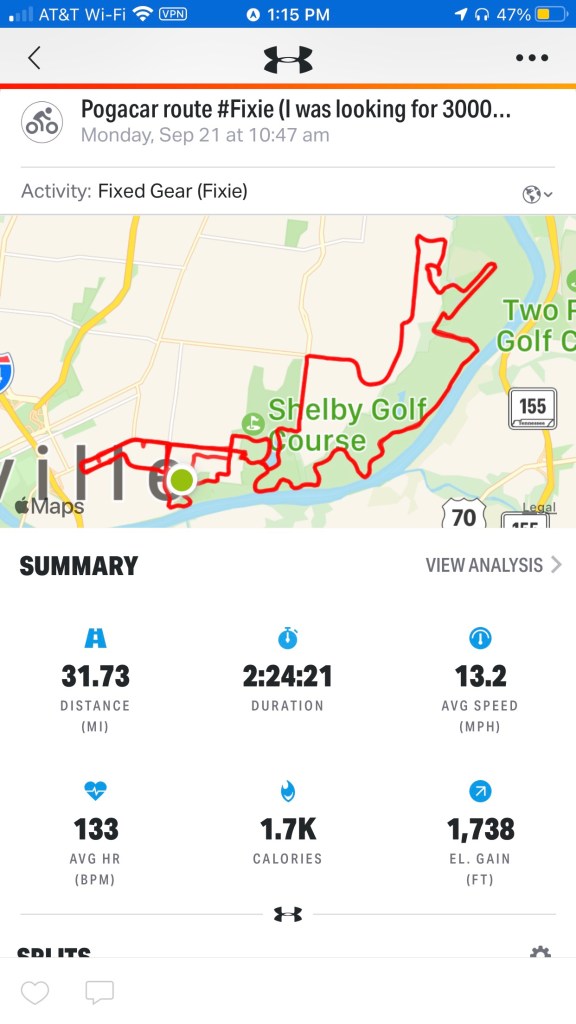 Today was my first conscious try at 2000 Feet over 31 Miles and true to 2020 snafunery I both succeeded & failed. Either way my legs handled the stress & the route works very well – including the Onsighted [o sighting is actually a Rock Climbing term meaning Climbed Without Ever Having Seen It Before] Airpark Road (blissfully steep & relentless; I can’t believe I avoided it until today).
