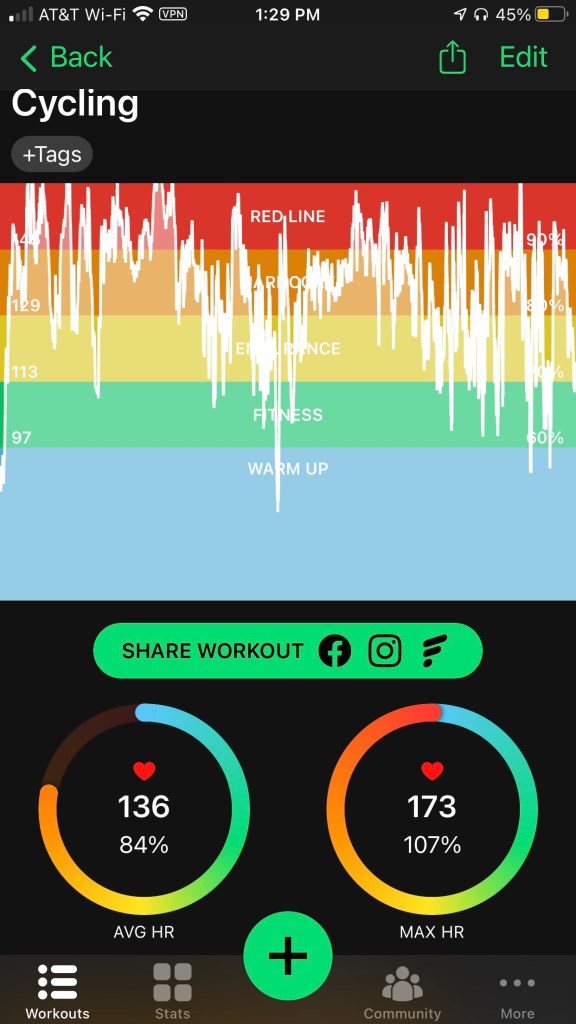 Eventually I’ll have to learn how uphill sprinting works, judging from my average heart-rate. My blood-oxygen level was 97% just after the rude & 94% about an hour after.