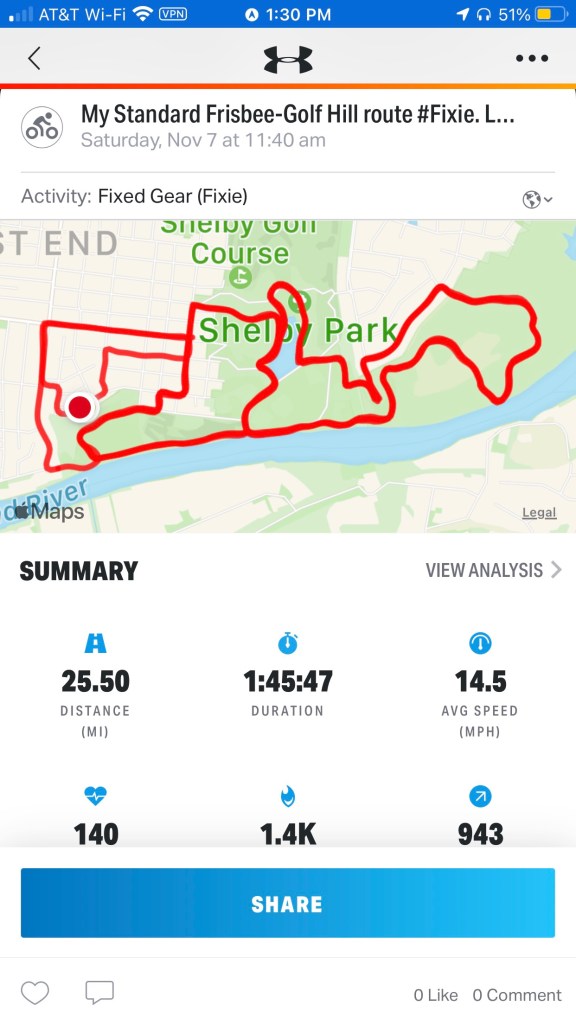 Still, a fun ride – my new regular Saturday. 900 feet of climbing in 25 miles. Keep up my 17 miles a day to hit 4000 miles for the year.