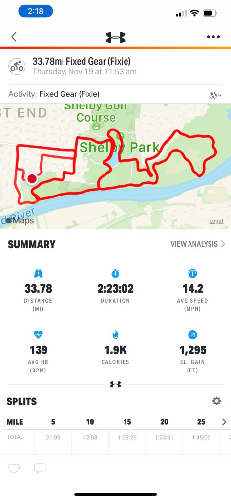 Winds in the high teens & gusts in the high twenties so I took out the heavy bike lest I get blown disastrously into traffic. Oddly enough it’s the same bike I was badly injured on & today I saw the passenger of the offending car walking her dog. I’m hoping she didn’t recognize me; quite an awkward meeting.