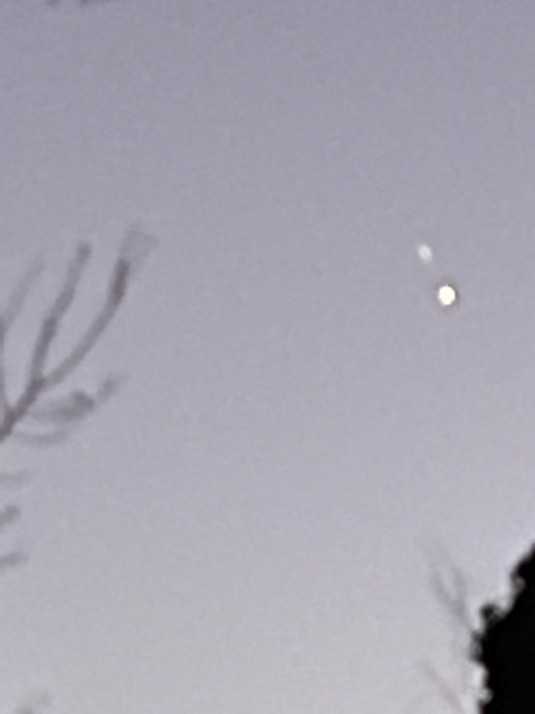The new iPhone 12 Pro Max has a lovely nighttime photography mode – over a second of exposure & it corrects most vibrations. I pointed it at Jupiter & Saturn at around 5:30 this evening.