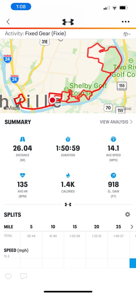 For only the second time in 10 years I got passed going up Frisbee Golf Hill. He was a very young polite dude tho & cranking his smallest gear; this means war.