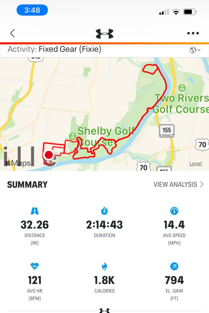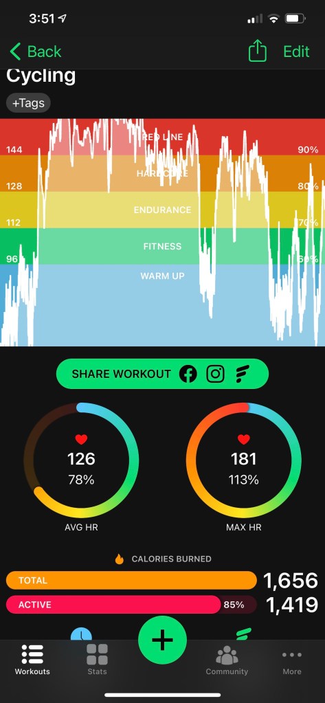 I went with a flatter route I’ll say because I had some wearifying Zyrtec in me against the dying leaf mold but in reality I was just tired. I did better math this time & eked out 32 miles and chose Electric Ave (which has 2 steep hills) as my exit.