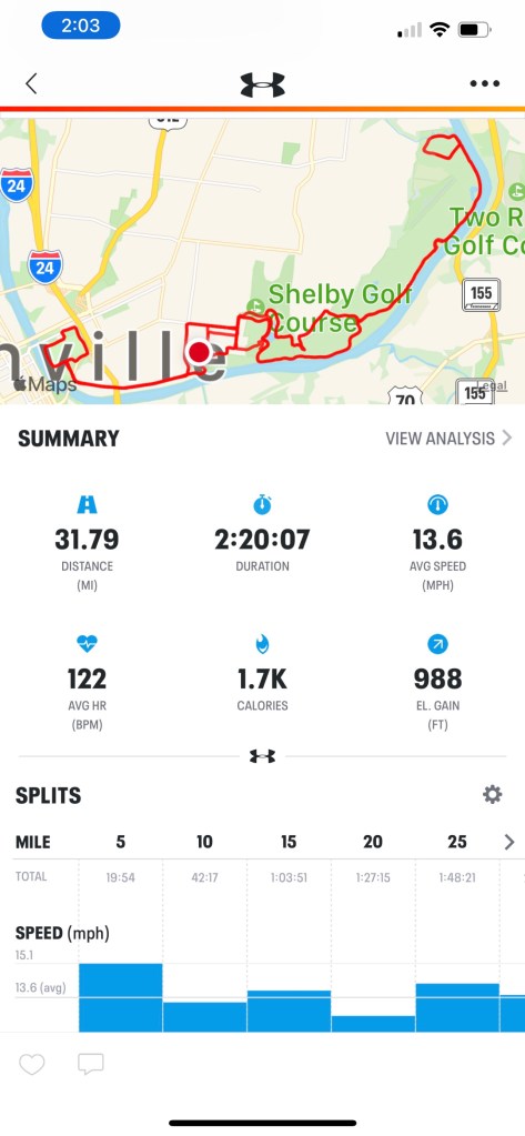 I got a later start than I wanted but the wind was under 20 mph and I wanted to see that I could still climb into a headwind. My leg is by no means 100% but it’s improved enough to start taking up the old routes again. I’m looking forward to Airport Sprinting again.