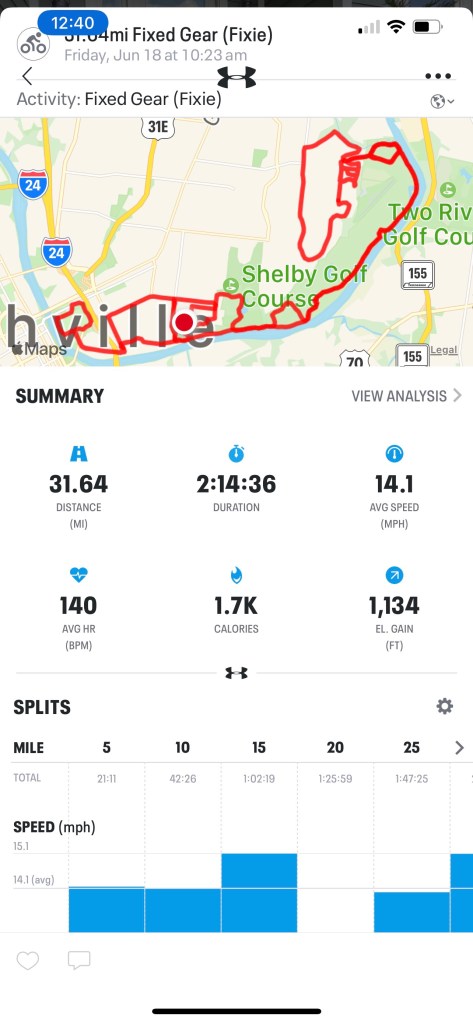 I’m looking for the right pattern now to get 2000 feet of up across 31 miles. Actually I think I’ve found the pattern but me legs won’t yet allow me to follow it, so I came home with about 1200 feet climbed. The hills right up next to The Otter Pond are beautifully steep with almost no traffic of any kind.