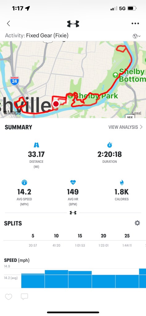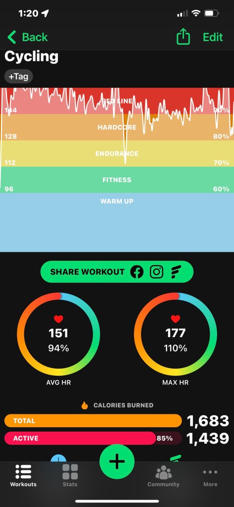 Oddly small picture. At any rate the app no longer adds up your Total Elevation Climbed so I did the best I could & got 1330 feet.