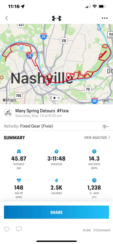 There was a Truck Rally at Me Sad Field which closed my regular loop to Car Traffic but in the end I was too irked by the awkward placement of the barriers & the increased traffic on other roads so I headed off over the bridge to do the bottom half of the old Saturday route. The grazing goats are still there but there was so much new construction that I hardly recognized the river-path.