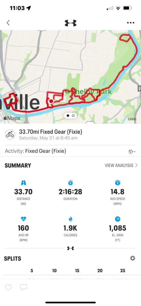 I had a flat on my Climbing Wheel so I just switched it out. All the work on Hector was making it mandatory anyway. Since I fell-in with many riding the Tour de Nashville — I lost count of how many I passed — the switch turned out to be a good deal. Two hills climbed only for 1085 feet of Up. The wind was rather punishing but I suspect I’ll get my firm back over time.