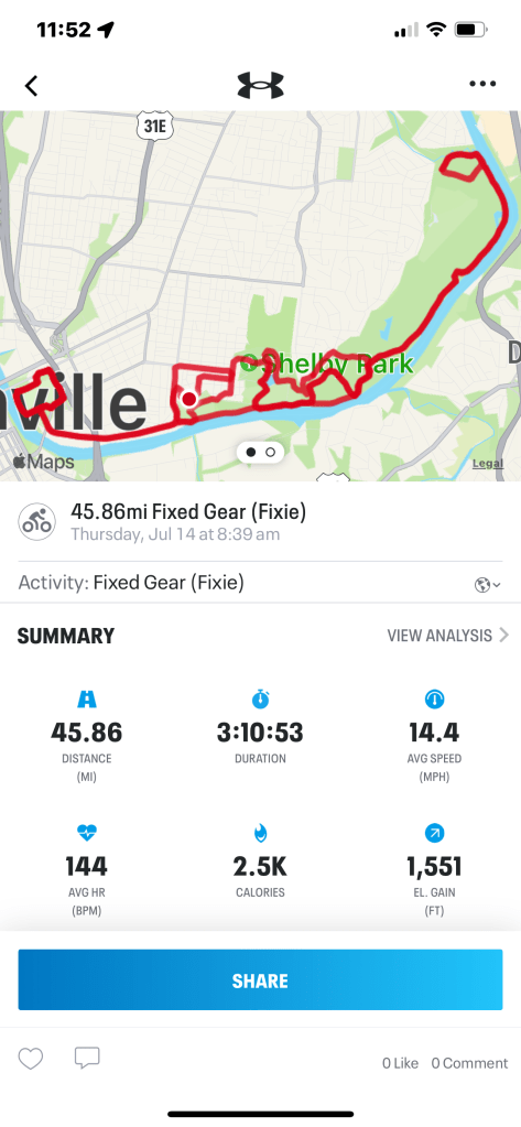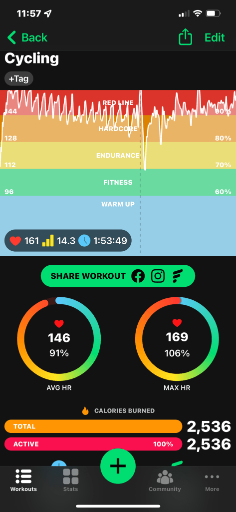 Although I kept it Traditionally Wednesday Flat I managed 1551 feet of Up and kept the high 14s nearly till the end. I’m starting to believe my seat is a tad too high but I’ll test for that later.