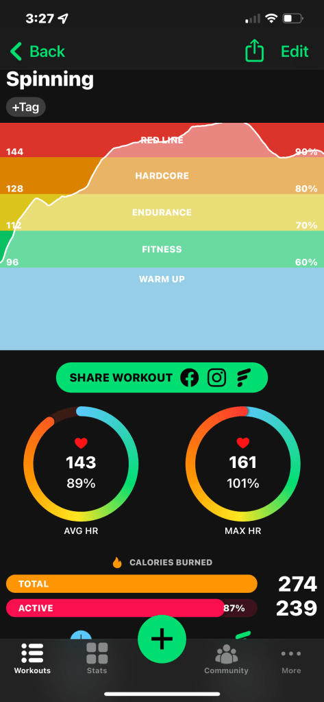 Just 20 minutes of straight pedaling — 5 minutes in the 40s rpm, 10 minutes in the 50s rpm, 5 minutes in the 40s. I read an article somewhere that this kind of variation was beneficial so I’m trying it.