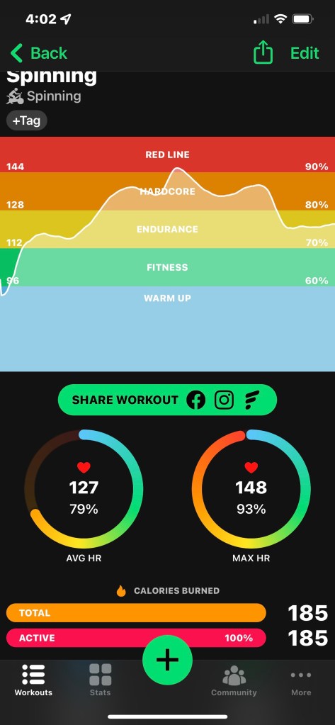 Today in general more fatiguing than others. I kept feeling several steps behind. Grilled a large Roast-Beef & used the closed-lid time to spin the AirBike. 2 5 minutes total — 7.4 miles. Tomorrow will be a climbing day.