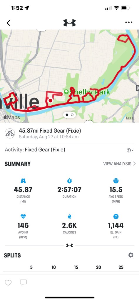 I’m beginning to suspect that the Altitude Calculator on MapMyRide has a bias against actual hills. On flat rides I get 1144 feet of Up and on hilly rides I get 1600 feet of Up. I’m betting that I cross 2000 feet more often than indicated.