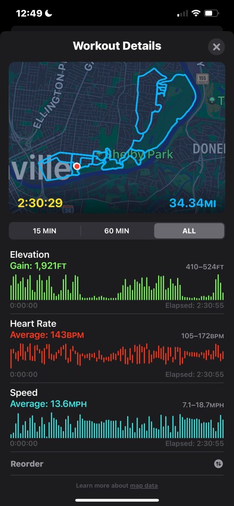 I was elated by nearly 1600 feet of Up (even tho I was aiming for 1800) in the app but because I was tracking my progress on my Watch I knew the actual number was higher: 1921 feet.