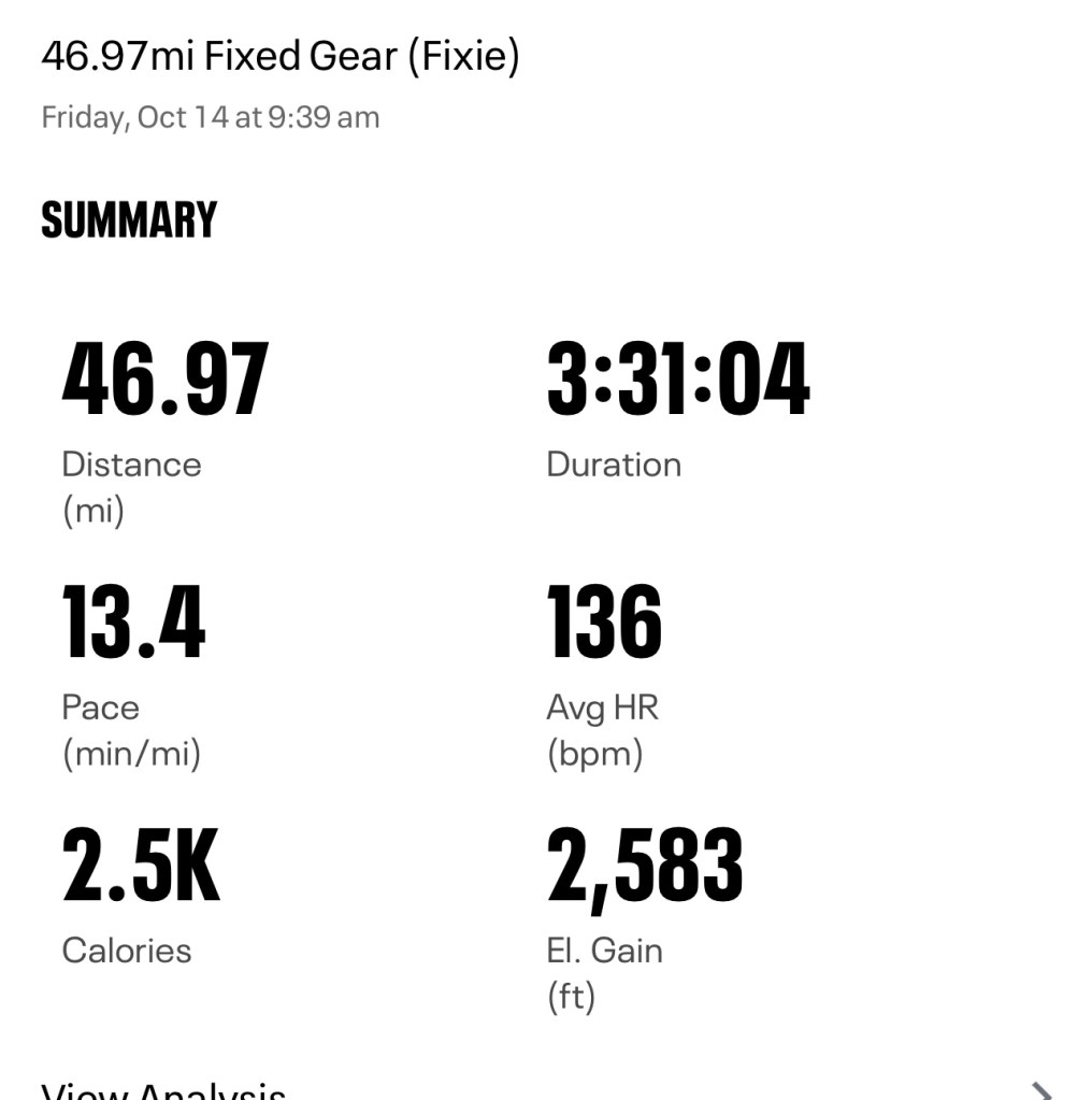 I put-off my regular Friday Kettlebelling to get a 9 ish start this morning on Mr Tib. Low humidity and 55 degrees at the start, 75 at the finish. The wind was relentless but I handled the hill-repeats well & the leg never complained.
