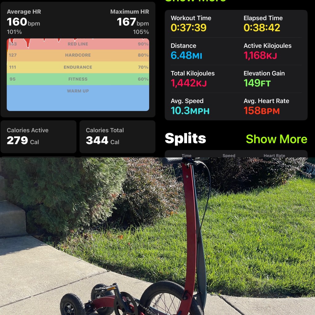 Warm enough today for some 2nd- and then 1st-gear action. Slick leaves on the usual uphill so I tried again to climb up my hill toward home. Made it just under half-way.