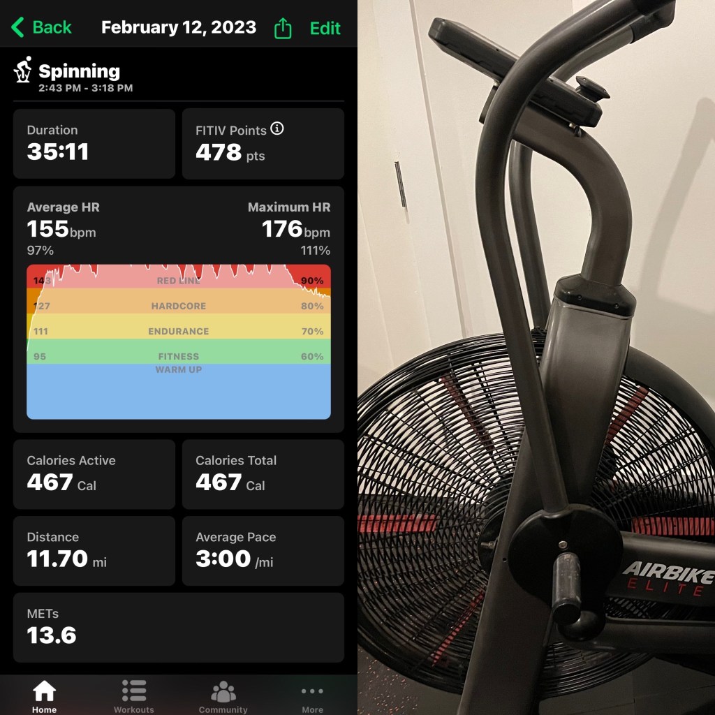 It was a lovely day out but my morning workout precluded an outdoor ride. I’m that old. Went on Aurora for 12.2 miles in 37 minutes.