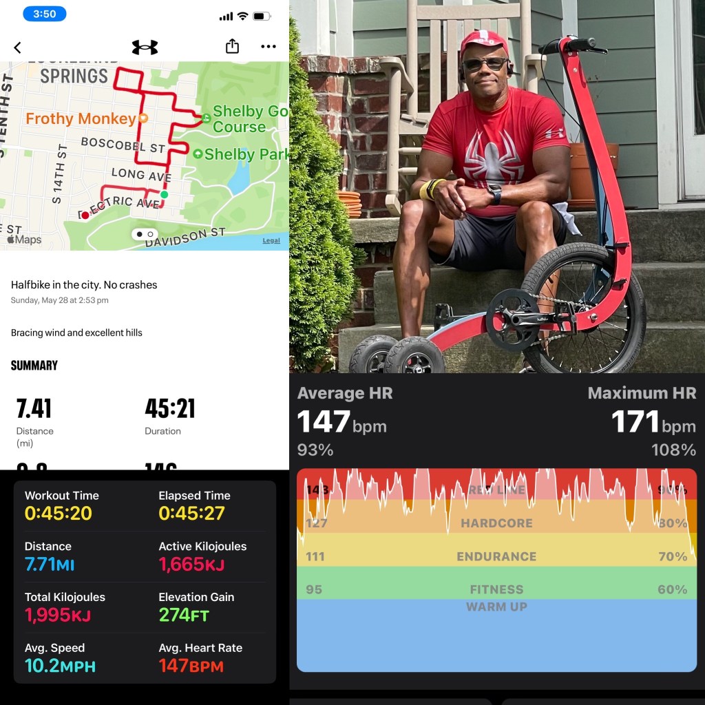 I missed the final sprint of the Giro so never saw the Manx Missile acquire the target one last time. So I rode Aurora for a few higher intensity plateaus than normal. Still a short ride but I had plans for a Halfbike ride too.