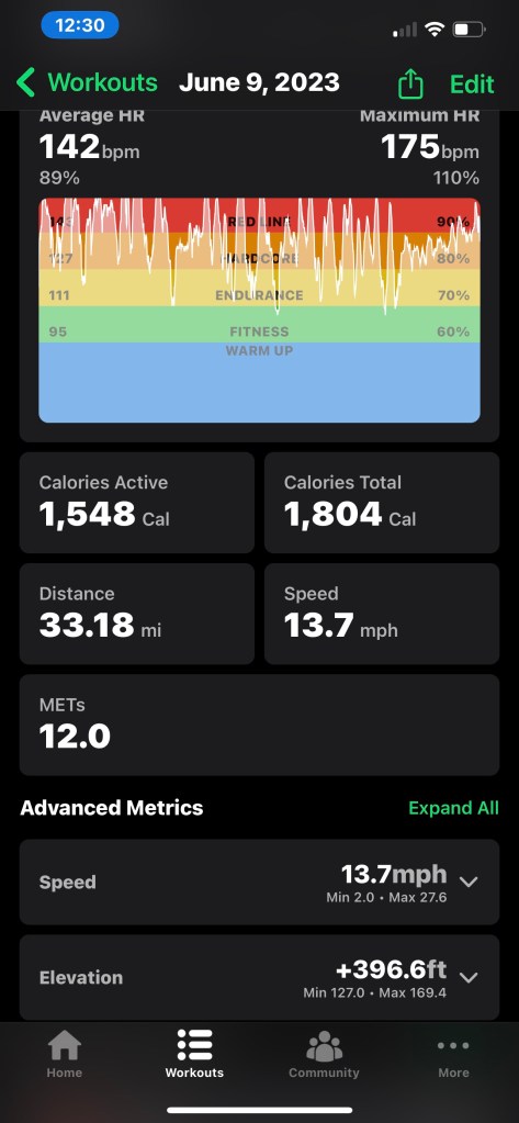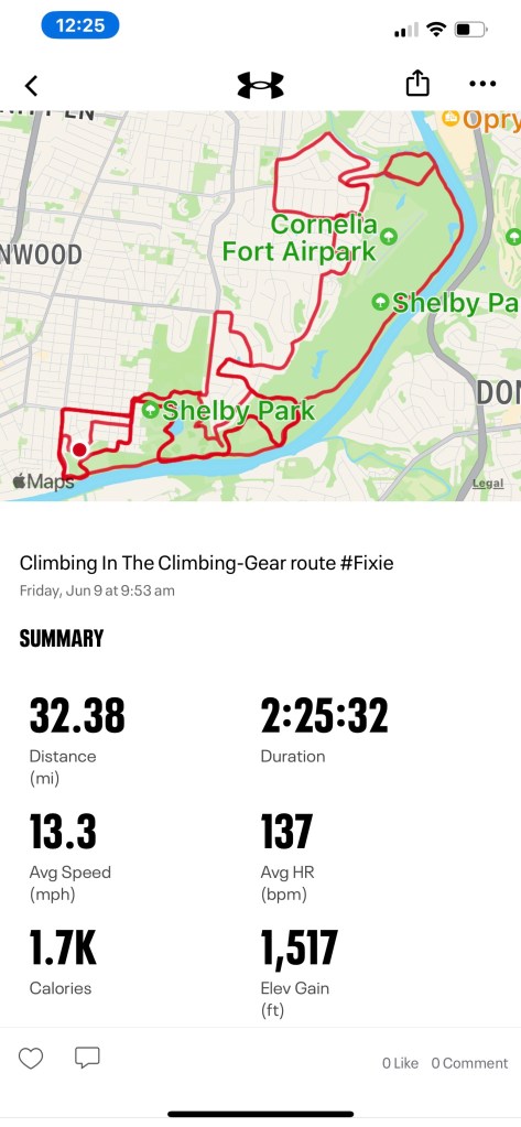 Decided to take a modified Friday route with emphasis on Frisbee Golf Hill, Real Golf Hill, Lillian, and Fortland. Hill Repeats are much more fun in low humidity. 1517 feet of Up.