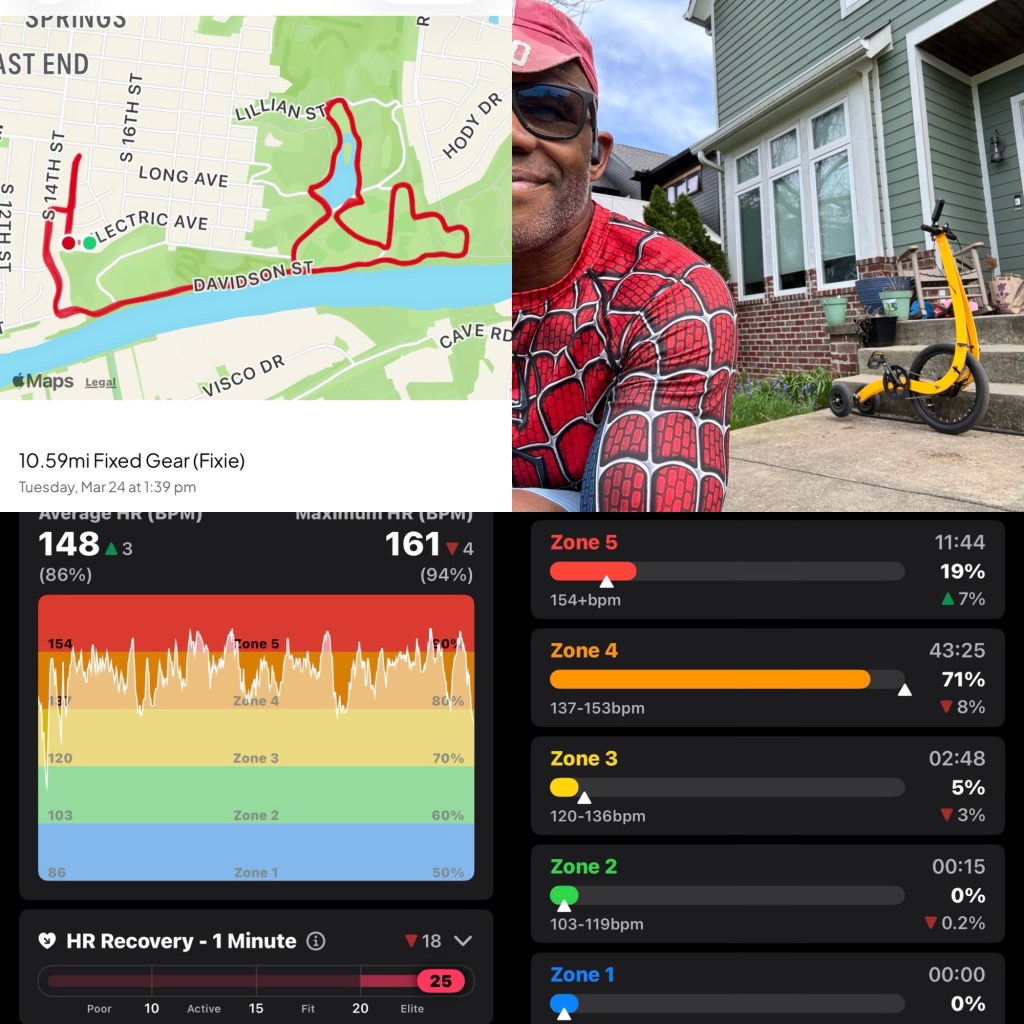 I waited until the gusts dropped into the teens and took Jeanne down Davidson. Fortunately the headwinds don’t blow me into traffic. I made my 3 laps for 8 miles & orchestrated 2 miles to get home.
