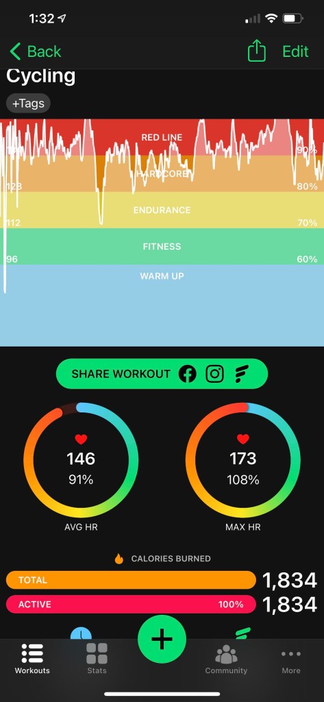 Right at about 41 miles I knew my leg wd not be able to get me home so I cut the ride down to 42 & change. I made it up the final 3 hills just fine but a longer ride wd’ve been disastrous. There was a time this wd’ve irked & depressed me but this season is entirely prep for next season.